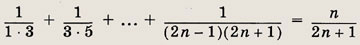 а) проверяем справедливость утверждения для объекта А1; б) предполагая справедливость утверждения для Ak, где k — произвольное натуральное число, устанавливаем справедливость его для Ak + 1. Если оба условия оказываются выполненными, то утверждение считается доказанным для всех объектов Аn, n € N (принцип математической индукции). Метод математической индукции широко применяется при доказательстве теорем, доказательстве справедливости тождеств или неравенств выражений, зависящих от натуральной переменной п, решении задач на делимость и т. д. Применяя метод математической индукции, докажите, что при любом n € N справедливы следующие утверждения (1-26): Задание 1.