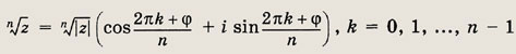У любого отличного от нуля комплексного числа существует ровно n корней n-й степени, которые можно определить по формуле
