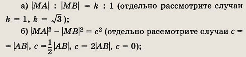 Задание 110. На плоскости даны точки А и Б. Найдите множество всех точек М плоскости, для которых выполнено условие: