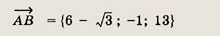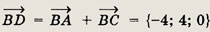 Задание 5. Даны три последовательные вершины параллелограммаАБСD: А(-3; -2; 0); B(3; -3; 1) и С(5; 0; 2). Найдите координаты его четвертой вершины D и длины сторон. Решение: Вычислим координаты векторов