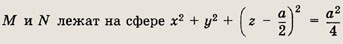 Запишем уравнения прямой (СС1): х = х0, у = y0, z = z0 и найдем координаты zc точек С и С1 пересечения этой прямой со сферой. Имеем 121 = х02 + y02 + z02 т.е.