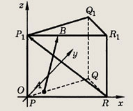 Задание 103. Дан куб ABCDA1B1C1D1 с ребром а. Найдите расстояние от ребра АА1 до диагонали B1D. Решение. Выберем систему координат Oxyz так, чтобы вершина Р совпала с началом координат, ось Оz была направлена вдоль ребра PP1, а точка Q лежала в верхней полуплоскости координатной плоскости Оху (рис.).