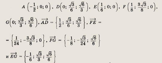 Данная пирамида — правильный тетраэдр. Определяем координаты нужных точек и векторов: