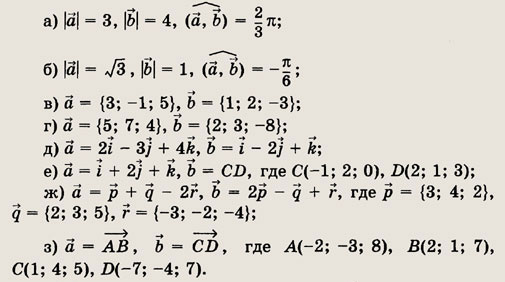 Ответ: a) (4; -2; 5) б) (1;-1;-2) в) г) (1; 5,5; -2,5) д) е) D(8; -3; 5) или D(-4; 0; -4) Задание 4. Даны векторы