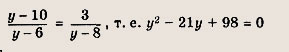 В точке касания М(х; у) для параболы выполняется равенство kx +1 = ах2 + bх + с (для окружности — равенство (х - х0)2 + (kx + 1 - у0)2 - R2). Приравнивая дискриминант полученного квадратного уравнения нулю (так как уравнение должно иметь единственное решение), приходим к условиям для вычисления коэффициентов касательной. Решите следующие квадратные и сводящиеся к квадратным после простых преобразований уравнения (1—19): Задание 1. х2 - 6х + 8 = 0 Ответ: {2; 4} Задание 2. 6х2 - 1х + 1 = 0 Ответ: