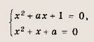откуда а = 2. Ответ: 2 Задание 52. При каких значениях а уравнения х2 + ах+1 = 0 и х2 + х + а = 0 имеют общий корень? Решение: Для переменных х и а должны одновременно выполняться равенства