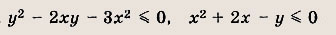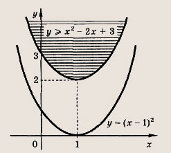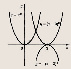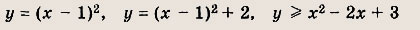 ах - х +1 - а = (а - 1)(х - 1) = 0 Если а = 1, то уравнения совпадают, но не имеют решений. Если же х = 1, то, подставляя это значение в любое уравнение, находим а = -2. Ответ: -2 Постройте графики заданных функций. На координатной плоскости отметьте штриховкой множество точек, координаты которых удовлетворяют указанным неравенствам (53—64): Задание 53. у = х2, у = (х - З)2, у = - х2 + 6х - 9 Ответ: