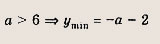 расположения вершины параболы: 1) хB - а < -2. Тогда наименьшее значение функции у = х2 - 2ах + 43 достигается в точке х = -2. Имеем у(-2) = 4а + 47 = 7, откуда а = -10; 2)