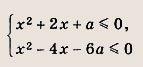 При решении задач 67—70 существенно помогает штриховка в плоскости (х; а) областей, задаваемых неравенствами, входящими в условия этих задач. Задание 67. Найдите все значения а, при которых система неравенств
