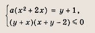 имеет единственное решение? Решение: В плоскости (х, у) отметим штриховкой множество точек, удовлетворяющих неравенству (у + х)(у + х - 2) < 0