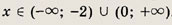 Точки х = +2 в ответ не входят, так как это корни знаменателя дроби. Ответ:
