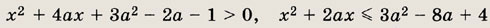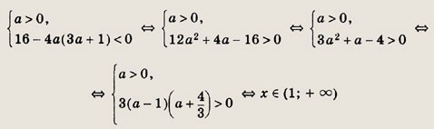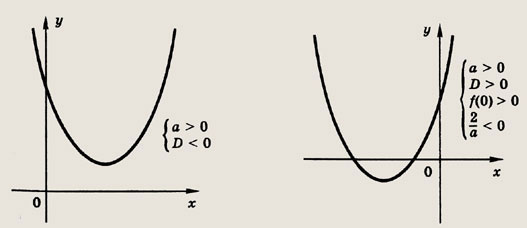 Последнее неравенство второй системы означает, что абсцисса вершины параболы отрицательна. Так как в этой системе первое и четвертое неравенства несовместны, то искомые значения а удовлетворяют первой системе: