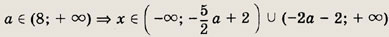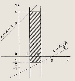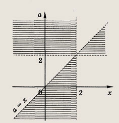 При фиксированном а0 решения — это абсциссы точек прямой а = а0, попавшие в заштрихованную область. Ответ: при