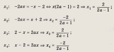 Задание 104. ||х - 2| > 2а|x| Решение: Здесь требуется найти те значения переменной х, при которых график функции у = ||х| - 2| лежит выше графика у = 2а\х\. Первый график не зависит от параметра, а второй меняется при изменении а. Рассмотрим различные случаи: 1) а < 0 (рис. а). Условию удовлетворяют все