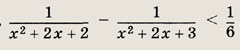 Так как t = x2 + 2x + 2>0 при всех х, то неравенство равносильно следующему: 6(t + 1) - 6t < t(t + 1); t2 + t - 6 > 0, откуда t < -3 или t > 2. Первое из неравенств не имеет решении, а второе приводит к неравенству х2 + 2х > 0, откуда