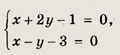 Таким образом, исходное уравнение равносильно уравнению (х + 2у - 1)2 + (х - у - З)2 = 0, т. е.