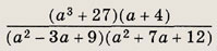 Решение: Заметим, что а3 + 27 = (а + 3)(а2 - За + 9), а2 + 7а = 12 = (а + 3)(а + 4). Теперь получаем