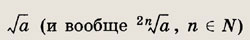 обозначается арифметический корень из неотрицательного числа а, т. е. неотрицательное число b, такое, что b2 - а (соответственно b2n = а). Символ