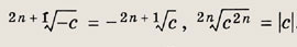 обозначает любое число b, такое, что b2n + 1 - а. Справедливы равенства: