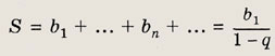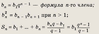 Если же последовательность b1 ..., bn, ... такова, что для любого n € N выполняется равенство bn + 1 = bn q, где q — фиксированное число, то такая последовательность называется геометрической прогрессией с первым членом b± и знаменателем q. Для геометрической прогрессии справедливы формулы: