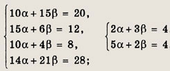20х + 12у + 8z + 28t = N Умножим первое уравнение системы на число второе — на число ß и сложим. Получим следующее равенство: