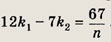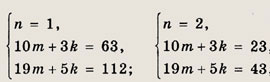 — это целые числа, равные числу контейнеров, пришедших на станцию в первый и во второй раз. Исключим из этих соотношений переменную т, умножая первое равенство на 12, второе на 7 и вычитая результаты друг из друга. Получим