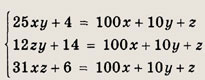 Из первого уравнения заключаем, что число (z - 4) делится без остатка на 5, а из второго — что число z является четным. Так как z — цифра, то z = 4. Теперь система преобразуется к виду (берем два последних уравнения)