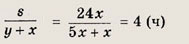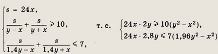 Пункты А и В расположены на реке так, что плот, плывущий из А в В со скоростью течения реки, проходит путь от А до В за 24 ч. Весь путь от А до В и обратно моторная лодка проходит не менее чем за 10 ч. Если бы собственная скорость моторной лодки увеличилась на 40%, то тот же путь (от А до В и обратно) занял бы у лодки не более 7 ч. Найдите время, за которое моторная лодка проходит путь от А до В. Решение: Пусть s (км) — расстояние между пунктами A и В, х (км/ч) — скорость течения реки, у (км/ч) — собственная скорость моторной лодки. Тогда согласно условию получаем систему