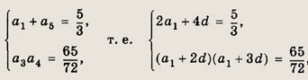 Сумма второго и шестого членов арифметической прогрессии равна 7,2, а сумма третьего и восьмого членов этой прогрессии равна 8,4. Найдите разность прогрессии. Ответ: 0,4 Сумма первого и пятого членов арифметической прогрессии равна 5/3, а произведение третьего и четвертого ее членов равно 65/72. Найдите сумму семнадцати первых членов прогрессии. Решение: Пусть а1 и d — первый член и разность прогрессии. Тогда по условию