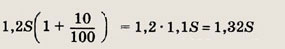 Выработка продукции предприятием за 1997 год увеличилась на 20%, а за 1998 год—еще на 10%. На сколько процентов увеличилась выработка продукции за два года? Решение: Пусть S — количество продукции, выработанное предприятием за 1996 год. Тогда