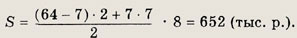 предыдущего. Решение: Дополнительные расходы на освоение одного нового вида продукции образуют арифметическую прогрессию с первым членом а1 = 7 тыс. р. и разностью d = 8 тыс. р. Таким образом, расходы на освоение n-го вида составят 7 + (n - 1)8 = 8n - 1 (тыс. р.). Освоение будет приносить доход до тех пор, пока 8n - 1 < 64, т. е.