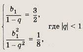 Сумма членов бесконечно убывающей геометрической прогрессии равна 3/2, а сумма квадратов ее членов равна 1/8. Найдите знаменатель прогрессии. Решение: Пусть b1