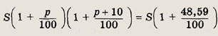 (р + 100)(р + 110) = 14859, р2+ 210р - 3859 = 0 Решив это уравнение, находим р = 17. Ответ: 17%