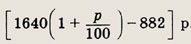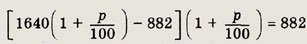 В результате переоборудования цехов производительность завода за год работы увеличилась на р%. На следующий год в результате улучшения системы управления — еще на (р + 50)%. На сколько процентов увеличилась производительность завода за первый год, если за два года она возросла в общей сложности втрое? Ответ: 50% В начале года на сберкнижку было положено 1640 р., а в конце года после начисления процентов, взято обратно 882 р. Еще через год на сберкнижке снова оказалось 882 р. Сколько процентов начисляет Сбербанк в год? Решение: Пусть р — процент начисления по вкладу Сбербанком за год. Тогда к началу второго года на сберкнижке оставалось