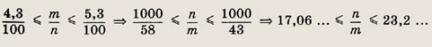 где n и m — натуральные числа, заключена между двумя положительными числами. Числитель дроби будет минимальным при минимально возможном знаменателе. Взяв m = 1, получаем n = 18. Ответ: 18 квартир