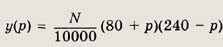 Таким образом, у(р) представляет собой квадратный трехчлен относительно переменной р. Его корни p1 = -80, р2 = 240, коэффициент при старшем члене