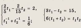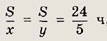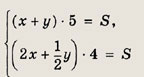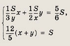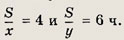 t1 = s/x и t2 = s/y. Запишем систему уравнений относительно неизвестных t1 и t2: