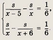 Пассажир, следующий из города А в город В, половину затраченного на весь путь времени ехал на автобусе, а половину времени на автомобиле. Если бы весь путь от А до В он проехал на автобусе, то это заняло бы у него в полтора раза больше времени. Во сколько раз автомобиль быстрее проезжает путь от А до В, чем автобус? Ответ: В 2 раза Два туриста вышли из А в В одновременно, причем первый турист каждый километр пути проходил на 5 мин быстрее второго. Первый, пройдя пятую часть пути, вернулся в A и, пробыв там 10 мин, снова пошел в Б. При этом оба туриста в В пришли одновременно. Каково расстояние от А до В, если второй турист прошел его за 2,5 ч? Ответ: 10 км. Из А в В в разное время выехали по одному и тому же маршруту грузовик и автобус. Скорость автобуса на 12 км/ч больше скорости грузовика. Они прибыли в В одновременно. За 2,5 ч до их прибытия в В навстречу им из В выехал мотоцикл, который встретил грузовик на 10 мин раньше, чем автобус. Найдите скорость грузовика, если она вдвое меньше скорости мотоцикла. Ответ: 36 км/ч. Из города А в город В с интервалом в 10 мин отправились три рейсовых автобуса. Первый автобус шел со скоростью на 5 км/ч меньше положенной, второй сохранял положенную скорость, а третий превышал ее на 6 км/ч. В результате все три автобуса пришли в Б одновременно. Определите расстояние между городами A и B. Решение: Пусть s — искомое расстояние от А до В, х (км/ч) — первоначально предполагаемая скорость рейсовых автобусов. Тогда по условию имеем систему .