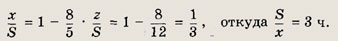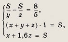 Два насоса различной мощности, работая вместе, наполняют бассейн за 4 ч. Для наполнения бассейна наполовину первому насосу требуется на 4 ч больше, чем второму насосу для наполнения 3/4 бассейна. За какое время может наполнить бассейн один второй насос? Ответ: 5 ч 20 мин. Три тракторные бригады, работая вместе, вспахивают поле за 4 дня. Первая и вторая бригады вместе вспахали бы это поле за 6 дней, а вторая и третья — за 8 дней. Во сколько раз больше вспахивает за день вторая бригада, чем третья? Ответ: В 1,5 раза На предприятии работают три машинистки разной квалификации. Первая печатает в час на 2 страницы больше, чем вторая, а у третьей на печатание страницы уходит на 4 мин больше, чем у первой, и в 4/3 раза больше времени, чем у второй. Сколько страниц в час печатает первая машинистка? Ответ: 10 Каждому из трех экскаваторов для того чтобы вырыть котлован, требуется определенное время, причем третий экскаватор вырыл бы котлован на 1 ч 36 мин быстрее второго. Работая все вместе, они выполнят задание за 1 ч. Если первый экскаватор проработает 1 ч, а затем третий еще 1,6 ч, то они вместе также выроют весь котлован. За какое время может вырыть весь котлован каждый из экскаваторов, работая самостоятельно? Решение: Пусть S (м3) — объем котлована, х, у, z (м3/ч) — производительность каждого из экскаваторов. Из условия задачи вытекают следующие равенства: