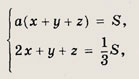3 ч; 4 ч; 2,4 ч. Три цистерны одинакового объема начинают одновременно наполняться водой, причем в первую цистерну поступает 120 л воды в минуту, а во вторую — 40 л в минуту. Известно, что в начальный момент времени первая цистерна была пуста, а объем воды в третьей цистерне в 2 раза меньше, чем во второй, и что все три цистерны будут заполнены одновременно. Сколько литров воды поступает за одну минуту в третью цистерну? Ответ: 80 лет Три бригады, работая вместе, могут выполнить некоторое задание за а дней. Если сначала в течение двух дней будет работать одна первая бригада, а затем в течение одного дня вторая и третья бригады, то выполненной окажется 1/3 часть этого задания. За какое время может выполнить все задание одна первая бригада? Решение: Пусть S —объем всего задания, х, у, z — производительность труда каждой бригады. Тогда
