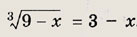 Решение: Уравнение равносильно следующему: 9 - х = (3 - х)3, т.е. х3 - 9х2 + 26х - 18 = 0 Одним из решений этого