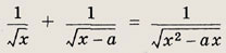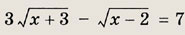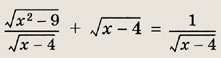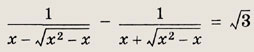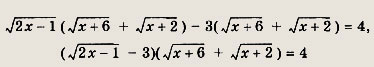 Решение: Умножим числитель и знаменатель каждой из дробей на сопряженное выражение. Тогда уравнение преобразуется к виду