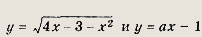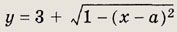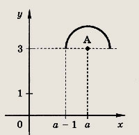 Что происходит с графиком функции при изменении параметра а? Указание: Это — верхняя половина окружности (х2 - а)2 + (у - З)2 = 1 с центром А(а; 3). При увеличении а полуокружность целиком смещается вправо. Ответ: