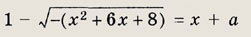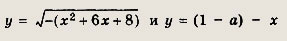 Первый график — это верхняя половина окружности у2 +(х + З)2 = 1. Графики прямых у = (1 - а) - х пересекают ось ординат в точках А (0; 1 - а). Мы видим, что уравнение имеет единственное решение при таких а, что