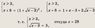 в правую часть равенства, после чего обе части равенства станут неотрицательными. Получаем равносильную систему