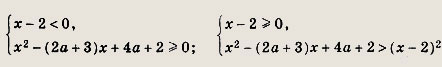 и проследите, что происходит с ними при изменении значения параметра а (см. задачу 189). Ответ: a € [2; 3) U (3; 4] Задание 199. При каких а система неравенств