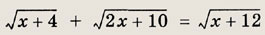 сведем уравнение к квадратному относительно у: 4у = 12 - у2, т.е. у2 + 4у - 12 = 0. Отсюда у1 =2; у2 = -6 (постороннее решение, так как