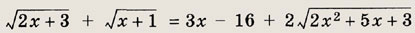 • Если уравнение содержит два или более радикала, то по возможности рекомендуется придерживаться следующих правил: 1) указать область определения данного уравнения; 2) распределить радикалы по обеим частям уравнения так, чтобы обе части стали неотрицательными; 3) только после этого возводить в квадрат правую и левую части уравнения.
