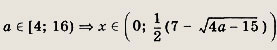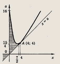 Прямая х = а касается параболы а = х2 - 7х + 16 в точке А(4; 4). Решив уравнение х2 - 7х + 16 - а = 0, получим выражения