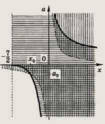 (вертикальная штриховка). Мы видим, что решения первого неравенства включают все решения второго неравенства лишь при а < а0. Для подсчета а0 найдем Х0 —- корень уравнения